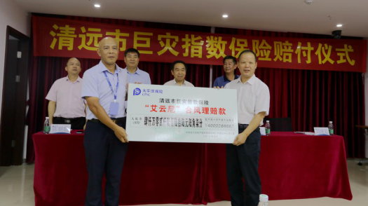 7月5日上午,中国太平洋财产保险股份有限公司清远中心支公司举行了巨灾指数保险的赔付仪式,向清远市财政局支付了4000万元的巨灾指数保险赔款,用于救灾复产工作,这是清远市成立保险公司以来最大的单笔赔偿金。