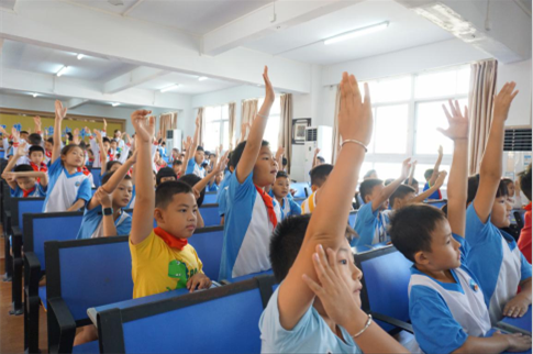 2018年9月29日,中国人寿财险清远中心支公司联合清城交警大队小市中队在新北江小学开展“星光守护”进校园交通安全体验课,现场小朋友争相举手发言抢答问题,踊跃发言。