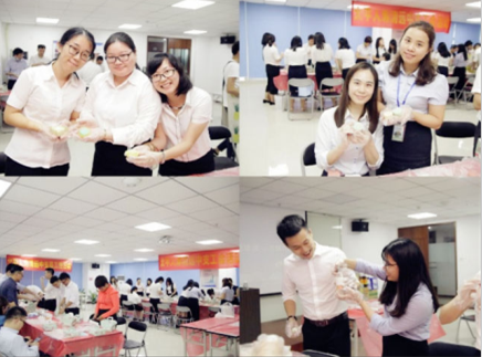 为迎接中秋佳节的到来,工会在生日会结束后,举行中秋烘培DIY活动和慰问活动。工会请来专业的烘培师傅亲自向员工讲解糕点的制作方法并亲自示范制作,员工都认真聆听学习,了解制作方法后,员工们亲自动手制作,在制作过程中手巧的同事指导、鼓励和帮助还不会制作的同事,当看到同事制作出精美的糕点时都给予称赞,欢声笑语中,同事们都亲手完成了糕点的制作,纷纷表示要带回家和家人分享自己的成果。
