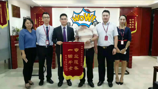 中意人寿清远中支收到了来自客户姚女士送来的一面锦旗,感谢中意人寿清远中支“一诺千金,专业服务”。