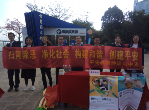 为进一步普及反洗钱、扫黑除恶、禁毒相关知识,提高广大人民群众的反洗钱、扫黑除恶、禁毒意识,扩大宣传的广度和深度,根据中国人民银行清远市中心支行的文件精神及工作部署,平安养老保险股份有限公司清远中支公司参加了由中国人民银行清远市中心支行在江滨公园(演艺广场)举办的反洗钱、扫黑除恶、禁毒宣传活动。
