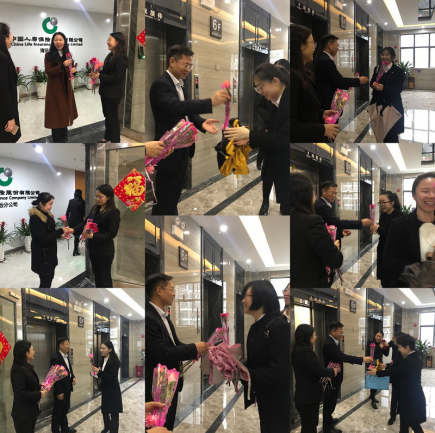3月8日,中国人寿清远分公司开展“魅力女性 如花绽放”三八节主题活动。早上,清远分公司陈建国总和周建美总为上班的女职工们送上惊喜玫瑰和康乃馨,送上祝福,喻意女职工们像花儿一样,为中国人寿添光加彩,做魅力知性女性。