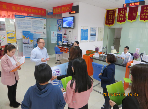 演练人员首先观看了去年演练视频,再次熟悉演练流程,后模拟了六个场景:客户来办满期气氛而走——带领多个客户来柜面吵闹投诉,柜面安抚——柜面安抚报备办公室——办公室通知总经理并安排营销渠道来协助处理——营销来分流客户协谈——处理完毕礼送客户。