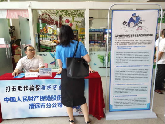 多年来,人保财险清远分公司承办清远大病医疗保险,积累了丰富的欺诈骗保经验,本次活动,人保财险结合国家相关的政策法规,积极向参保人解答、宣传涉及欺诈骗保的行为的严重性,倡导政府机构、医药机构和参保人共同维护好基金安全。(人保财险 陈赞科)