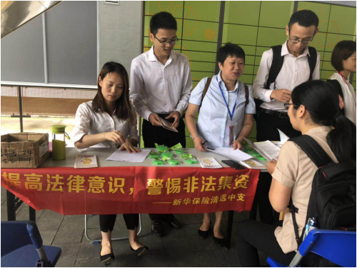 为贯彻落实银保监会《关于开展2019年防范非法集资 宣传月活动的通知》(银保监发【2019】110号)中国保险行业协会《关于落实2019年防范非法集资宣传月活动要求的通知》(中保协函【2019】178号)以及总公司《关于开展2019年防范非法集资宣传教育工作的通知》(新保发【2019】203号)的文件精神,更好地落实开展本次防范非法集资宣传月活动,新华保险清远中支开展非法集资知识进社区活动。