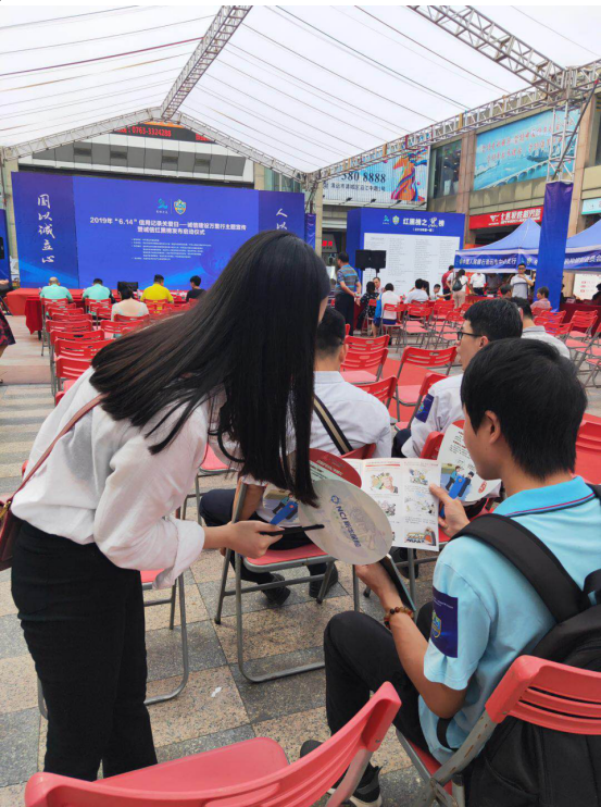 6月13日下午,由市文明办、市发改局、中国人民银行清远市中心支行主办的2019年“6.14”信用关爱纪念日活动在清城区城市广场开展。新华保险清远中支内外勤伙伴到场参加。