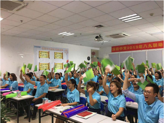 今天清远中支88位营销伙伴齐聚公司大职场进行八九联动业务启动大会,为八九联动冲刺擂鼓助威!
