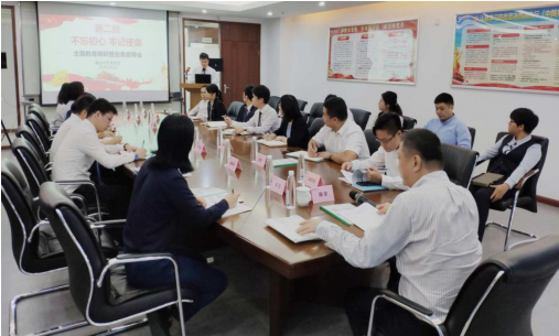 首先,由清远党支部书记、机构总汤思亮汇报中支第二批主题教育的开展情况以及中支年度业务达成情况。