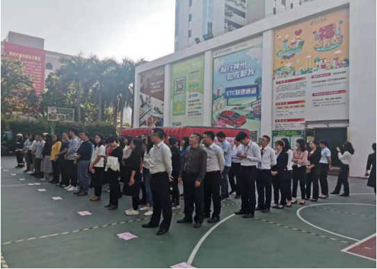 随后,教官带领大家进行应急疏散逃生演练,随着火灾警报响起,全员迅速有序疏散到安全区域。