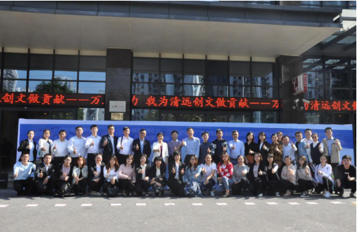 最后,清远保险业参加人员在创文签名横幅前合影留念。(太平人寿 梁远艳)