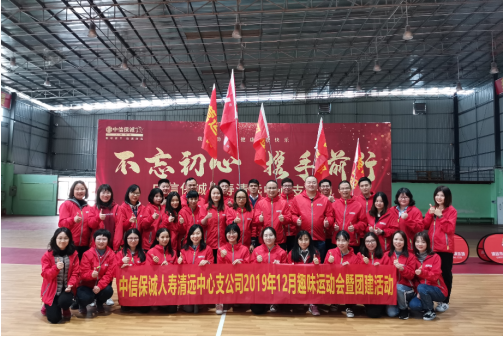 2019年12月20日,中信保诚人寿清远中支在清远勇冠体育馆举办了趣味运动会暨团建活动。公司总经理胡祥、营销渠道总经理梁永洪、银保渠道总经理李彬彬以及营运部总经理李洁华参与了本次活动,与全体内勤职工同场竞技。