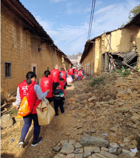 虽然天气寒冷,路途偏远,但也阻挡不了志愿者们的脚步,他们早早就驱车来到黄花镇。黄花镇是清远地区比较偏僻,条件相对较差的乡镇,村里大多数人外出打工,留下老人和孩子在家,本次探访村里5户留守家庭,合计18名留守儿童。