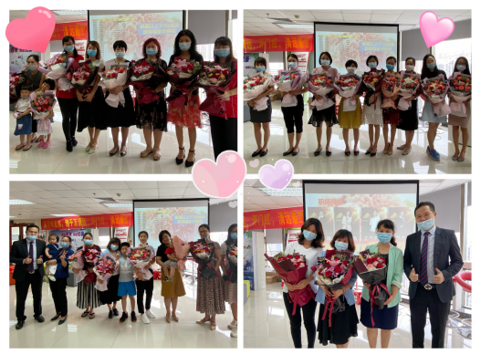 活动当天上午,友邦清远内勤男同事早早来到职场,手捧鲜花迎接各位美丽母亲的到来!