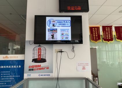 新华保险清远中支在中支职场门口LED显示屏设置了滚动播放“驾乘摩托有牌证,安全行车有保证”“驾乘摩托限两人,全家幸福系一人”“驾乘摩托靠右行,安全驾驶我最行”“驾乘摩托戴头盔,既保安全又最‘威’”的标语。在客户服务中心电视上播放摩托车、电动自行车驾驶安全的宣传折页知识及图片,让客户了解摩托车、电动车交通违法存在的安全隐患、出发前应做哪些准备工作以及正确佩戴头盔等交通安全知识,以此提醒广大摩托车、电动车驾驶人自觉遵守交通法规。