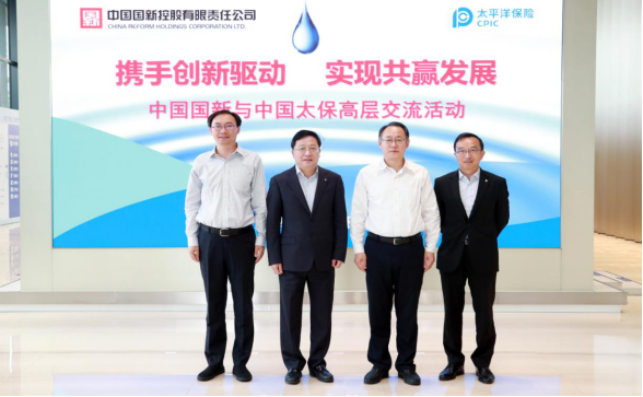 6月8日,中国太保董事长孔庆伟会见来访的中国国新董事长周渝波一行,双方对持续深入地推进创新驱动发展、助力经济转型升级形成深入共识,中国太保总裁傅帆陪同会见。