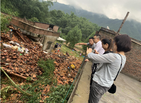 广东分公司理赔部部长祝俊、清远中支总经理陈进宏在佛冈农房受灾现场查勘