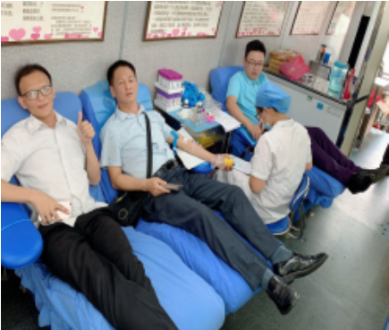 早上十点,清远市中心血站的献血车来到了新华保险职场一楼。在献血车旁的填表点已经是座无虚席,志愿者们在工作人员的指引下,按序进行登记、填表、量血压、测血型等,顺利通过的志愿者才可以参与公益献血。不同的是他们当中有的是首次挽臂献血,有的已多次参与无偿献血,但相同的是他们以实际行动支持公益、抗击疫情、奉献社会。在一片爱心笼罩的氛围中,新华保险清远中支志愿者们共计献血340 0毫升,助力缓解了清远临床用血紧缺问题,工作人员还现场为志愿者们发放献血证。