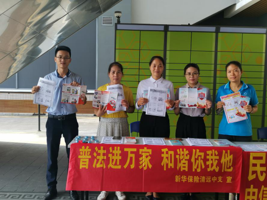 为弘扬法治精神,增强社区居民的法律意识,新华保险清远中支开展“普法宣传进社区”宣传活动。