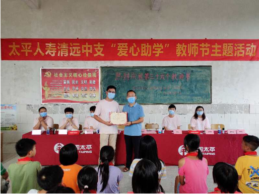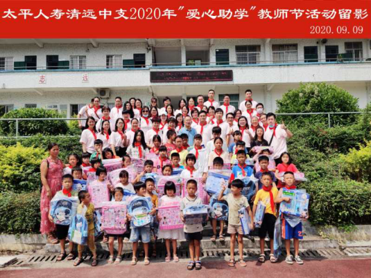 2020年是全面建成小康社会目标实现之年,是脱贫攻坚收官之年,为巩固脱贫成果,关爱留守儿童,关注祖国的未来,构建和谐社会,展现太平人寿大爱,在第36个教师节来临之际,9月9日,清远中支总经理汤思亮带领内外勤讲师共42人,到清远市清新区龙颈镇富勤第一小学进行“爱心助学”教师节主题活动。