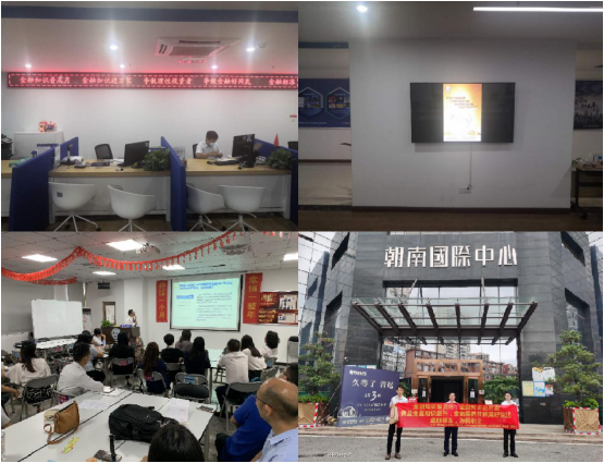 为营造职场金融知识普及月活动良好氛围,太平人寿清远中支在本部及清新营销服务部职场LED屏滚动播放“金融知识普及月 金融知识进万家 争做理性投资者 争做金融好网民”宣传标语;职场电视播放防范非法集资等宣传视频;柜面前台摆放反洗钱、防范非法集资、扫黑除恶等宣传折页。