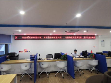 我司持续职场布置宣传,在职场显著位置常年张贴反洗钱、扫黑除恶等海报,前台显眼位置摆放防范非法集资、反洗钱、扫黑除恶等宣传折页,使群众可随时取阅相关宣传折页,形成常规化宣传,柜面前台LED屏幕滚动播放“改革开放再深化,平安金融惠万家”等宣传标语,积极营造平安金融宣传月活动氛围。