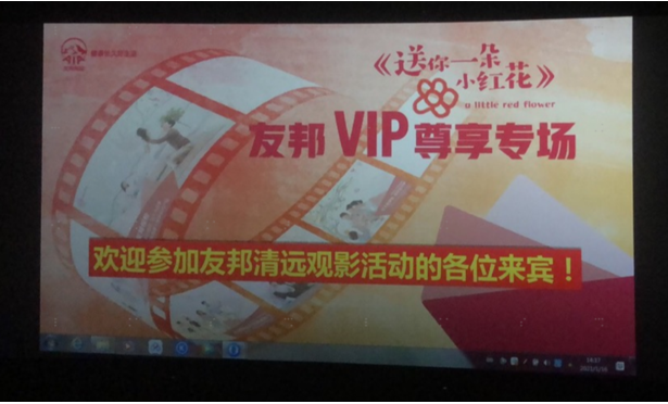 2021年1月16日,友邦人寿清远中支组织全体内外勤员工及准增员一起观看了电影《送你一朵小红花》。