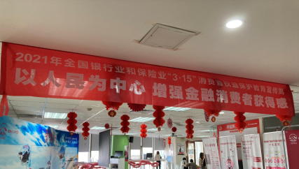 (二)在职场的电子屏播出“2021年全国银行业保险业‘3.15’消费者权益保护教育宣传周”“以人民为中心,增强金融消费者获得感”“有温度的金融服务,护航幸福晚年”“树立理性消费观念、谨防过度借贷”等海报及视频,以及扫黑除恶专项斗争宣传标语口号,通过线下网点的传播增强金融知识宣教的针对性、生动性和实用性。