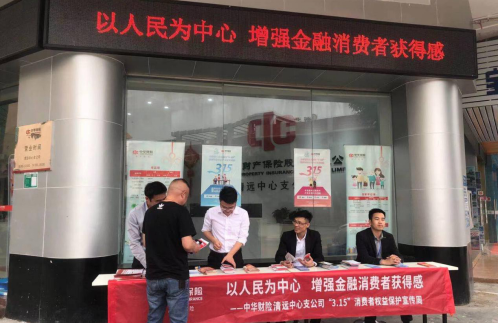 3月15日,中华财险清远清远中支以“以人民为中心,增强金融消费者获得感”为主题开展“3·15”消费者权益保护宣传周活动,贯彻落实好金融宣传教育工作。