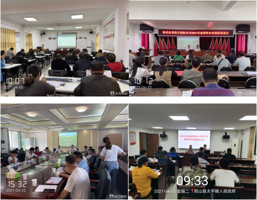 中标后,阳光农险清远中支抢先抓早争主动,分三步走,提前规划部署农险承保工作。一是召开工作会议,及时调整人员和机构。根据中标地域范围,合理调整机构设置,并将人员进行调配,保证中标区域人员车辆充足,落实基础保障。二是及时汇报。主动联系拜访市县农业主管部门,汇报政策性农险筹备工作进展及宣传推动工作安排,争取工作支持。三是主动承保推广。4月9日开始,陆续在清新区石潭镇、山塘镇,阳山县太平镇等重点行政区域召开政策性农业保险承保工作推动会议,以PPT演讲的方式,向各县各镇分管领导、农办主任、协保员等讲解新一轮农险高质量发展“扩面、增品、提标”文件精神及相关要求,重点宣传、培训承保、理赔工作流程,确保农业保险高质量发展精神深入基层,确保公司承办险种家喻户晓,确保承保理赔操作清晰明了。