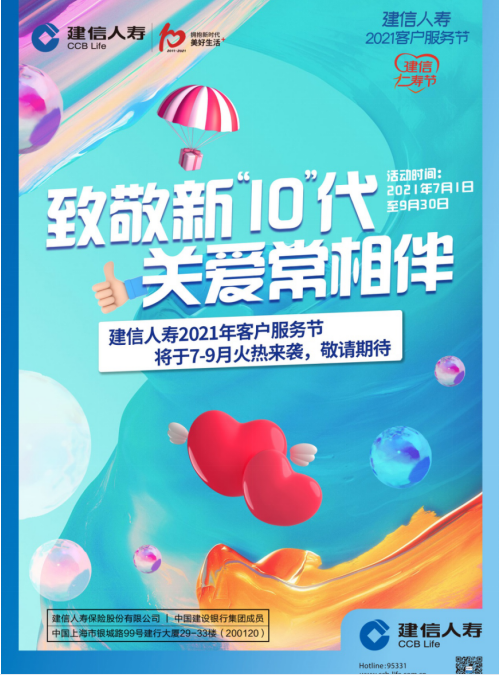 建信人寿清远中心支公司秉承“一朝牵手、关爱永久”的客户服务宗旨,围绕新金融理念、精细化服务、数字化赋能,大力践行“以人民为中心”的发展思想,积极为广大人民提供风险保障和金融保险服务,以“致敬新‘10’代,关爱常相伴”的主题,于2021年7-9月举办客户服务节,推出六大主题活动,让广大客户受益。