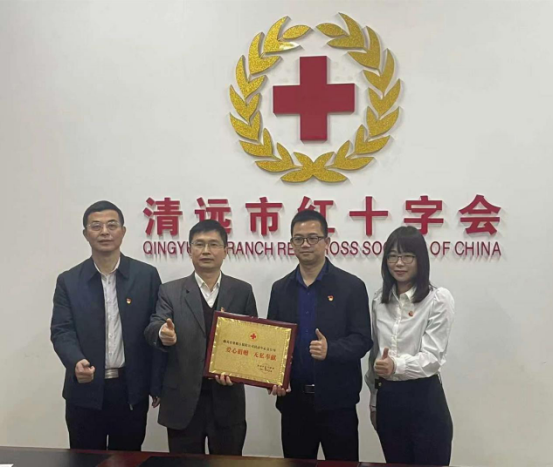 清远市红十字会赠与我司“爱心捐赠 无私奉献”牌匾