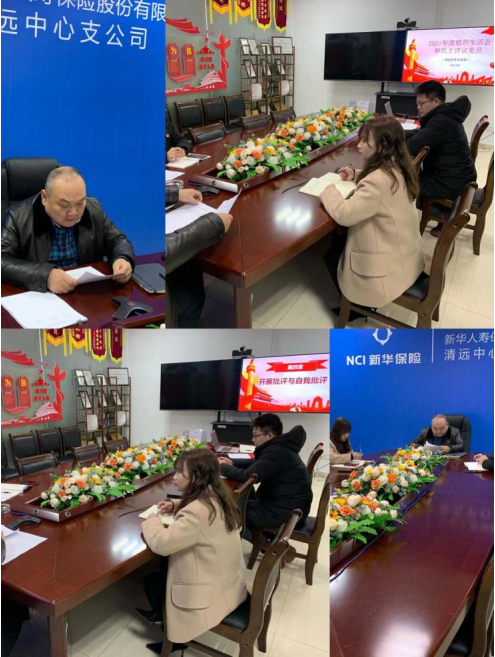 2022年2月22日下午,新华保险清远中心支公司党支部于中支会议室召开了2021年度组织生活会暨开展民主评议党员会议,会议由支部书记主持,支部全体党员应参会4 人,实参会4人,列席1人。