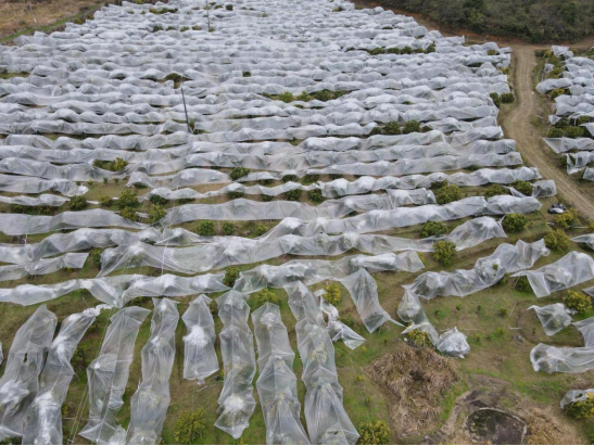 阳光农险指导农户对砂糖桔进行覆膜防冻