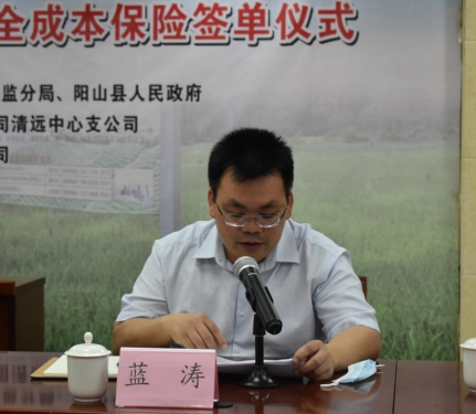 签单仪式上,阳光农险清远中支总经理陈进宏首先感谢各级政府单位对我司的支持和信任,介绍了项目初衷、进行服务表态以及介绍与阳山县的良好合作基础,并表示我司将以签单仪式为契机,为助力乡村振兴付出更大的努力。接下来,广东品生农业科技有限公司总经理赫欢欢介绍阳山县农业生产托管服务情况。