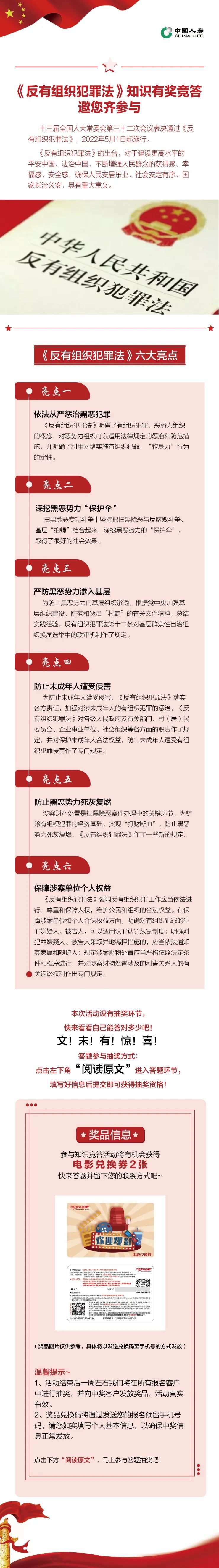 《反有组织犯罪法》知识有奖竞答邀您齐参与