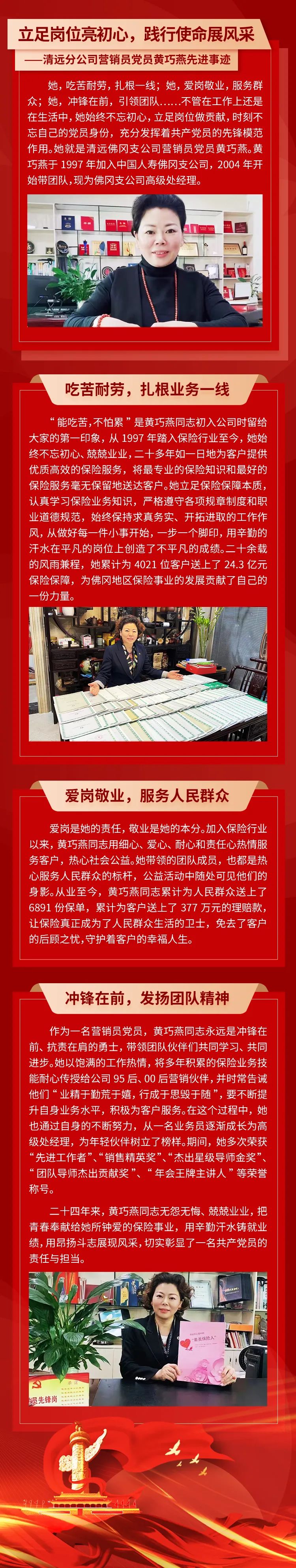 营销员党建专栏丨立足岗位亮初心践行使命展风采清远黄巧燕