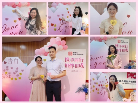 5月20日,人保财险清远市分公司举办“携手同行 相伴相成”告白活动,通过此次活动鼓励职工在工作和生活中用心感受爱、勇敢表达爱、大方传递爱。