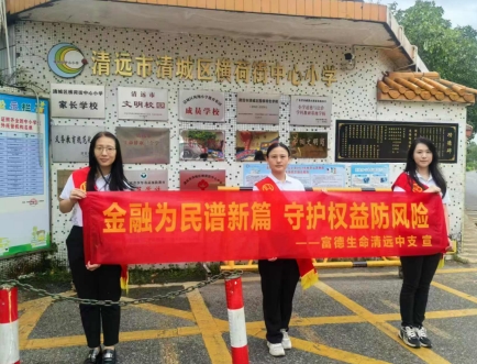 2024 年 9 月 9 日,富德生命人寿清远中支开展金融知识户外宣传活动。工作人员们带着满满的热情和包含丰富金融知识的宣传折页,来到了横荷街中心小学进行宣传。
