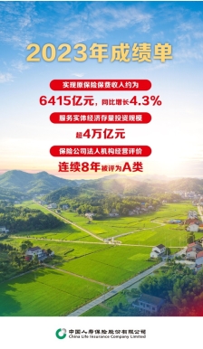 奋勇争先,在高平台上再创佳绩。2023年,公司实现原保险保费收入约为6415亿元,同比增长4.3%。自2015年开展保险公司法人机构经营评价以来连续8年被评为A类,信用评级结果保持国内最高水平;位列《福布斯》全球企业2000强榜单第62位、《财富》中国上市公司500强榜单第12位,荣获“2023高质量发展保险公司方舟奖”“中国传播创新大奖”等殊荣。