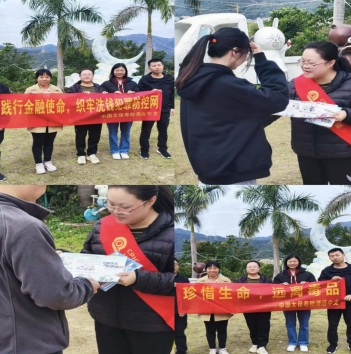 清远中支连州营销服务部在公司旁边小公园开展反洗钱、扫黑除恶以及禁毒宣传,现场向来往群众派发宣传手册,讲解打击洗钱犯罪、防范毒品犯罪等金融安全知识,提升群众金融风险识别和防范能力。