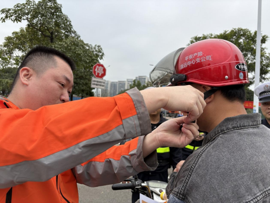 2月2日起,平安产险清远中心支公司在凤鸣西路设立“暖心驿站”,联合清远市公安局清城分局交通管理大队,面向过往市民开展交通安全知识普及活动。工作人员现场示范如何正确佩戴安全头盔,深入剖析“戴而不扣=没戴”的常见误区,并结合真实案例讲解头盔在事故中的关键防护作用。