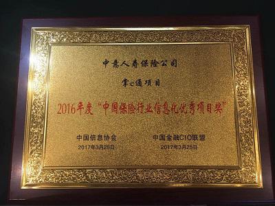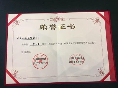 近日,中意人寿保险有限公司自主开发的“掌e通”系统荣获中国信息协会颁发的“中国保险行业信息化优秀项目奖”。