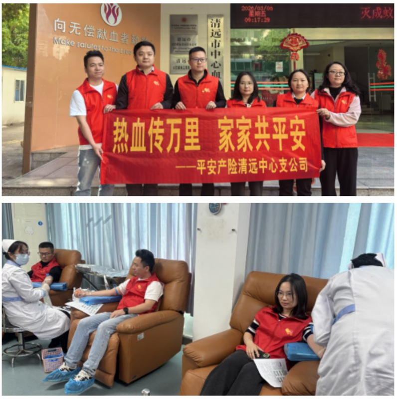3月6日,平安产险清远中心支公司组织员工开展无偿献血公益活动。多名员工积极响应号召,挽起袖子,捐献热血,用实际行动践行社会责任,传递生命希望。每一滴热血,都是对生命的敬意;每一次奉献,都是对初心的坚守。此次献血活动不仅展现了平安员工热心公益、关爱社会的良好风貌,更将“金融为民、服务社会”的理念从宣传教育延伸到实际行动,让责任与爱心在春风中流淌。