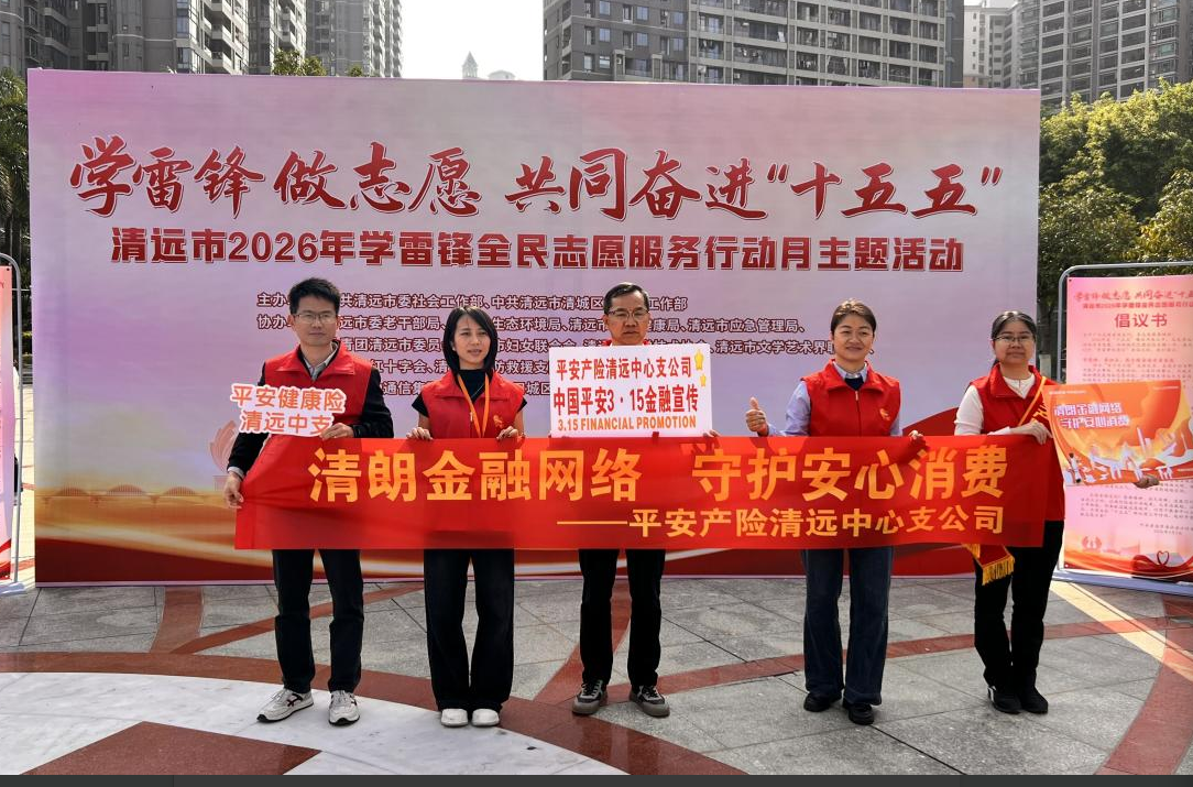 为持续推进金融消费者权益保护工作,提升社会公众金融知识素养,增强金融消费者维护自身合法权益的意识和能力,在国家金融监督管理总局清远监管分局、清远市保险行业协会的指导下,3月7日,平安产险清远中心支公司走进清远市静福广场与荷兴社区,开展以“清朗金融网络 守护安心消费”为主题的系列公益活动,全面启动2026年“3·15”金融消费者权益保护教育宣传活动,以实际行动践行“金融为民、服务社会”的初心使命。