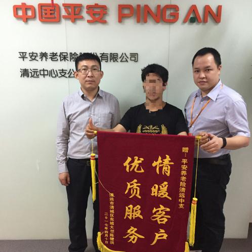2017年5月18日,平安养老险清远中支(以下简称公司)客户陈先生将一面写有“情暖客户,优质服务”的锦旗送至公司,感谢平安养老险的专业快捷理赔服务,解决了客户的实际问题。