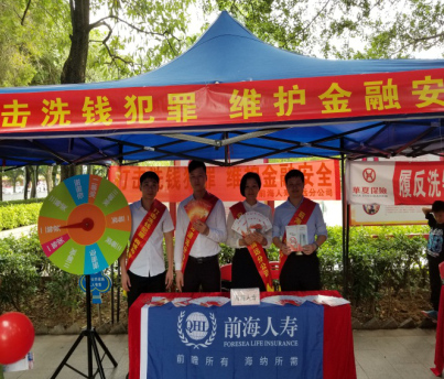 为履行反洗钱义务,做好2017年反洗钱宣传月活动工作,前海人寿保险股份有限公司清远分公司(以下简称“我司”)在11月11日参加清远市人民银行反洗钱科组织开展2017年广东省反洗钱宣传接力清远站活动。