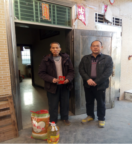 2018年2月8日下午,人保财险佛冈支公司组织部分党员干部、员工9人前往佛冈县水头镇莲瑶村委会精准扶贫对口帮扶贫困户开展2018年新春扶贫慰问送温暧活动,分别为9 户帮扶贫困户送上油、米等节日慰问品和慰问金。每到一户,分别与村干部及帮扶对象了解他们家庭的生产、生活、健康状况,了解他们新一年的愿望,送上人保财险佛冈支公司干部员工对他们的新春祝福,祝福他们新春快乐!(人保财险 巫汉辉)