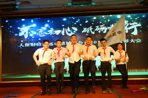 大会开始前,首先播放了倒数10秒的视频,具有冲击力的画面,穿透力十足的声音,为大会营造了充足的气氛。紧接着,清城支公司六位精英身穿人保运动服,带来充满活力的开场舞,正式拉开表彰大会序幕。