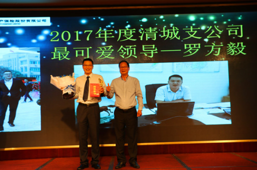 大会最后一项,清城支公司负责人罗方毅经理做大会总结。在总结之前,现场工作人员还特别给罗经理授予了“最可爱领导”的神秘大奖,这让毫无心理准备的罗经理感到非常意外,激动不已!最后,罗经理对本次表彰大会的圆满成功表示热烈祝贺,并对过去一年在各自岗位上兢兢业业,付出辛勤汗水的全体人员致以最衷心的感谢和最诚挚的祝福!