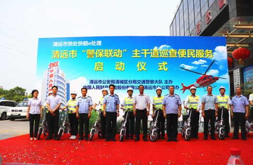 6月1日上午,人保财险清远市分公司联合市公安局交警支队、清城区公安局交警大队举办“警保联动”主干道巡查便民服务活动启动仪式。该项便民服务的推出,可以更好地协助车主快捷处理轻微交通事故,缓解清远市区道路交通拥堵问题。市分公司负责人刘大姿、副总经理钱润添及理赔中心相关人员,市交警支队副支队长刘志锋、清城区交警大队副大队长文杰等相关人员,清远电视台和清远日报媒体记者出席了启动仪式。